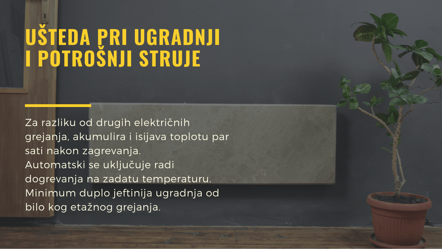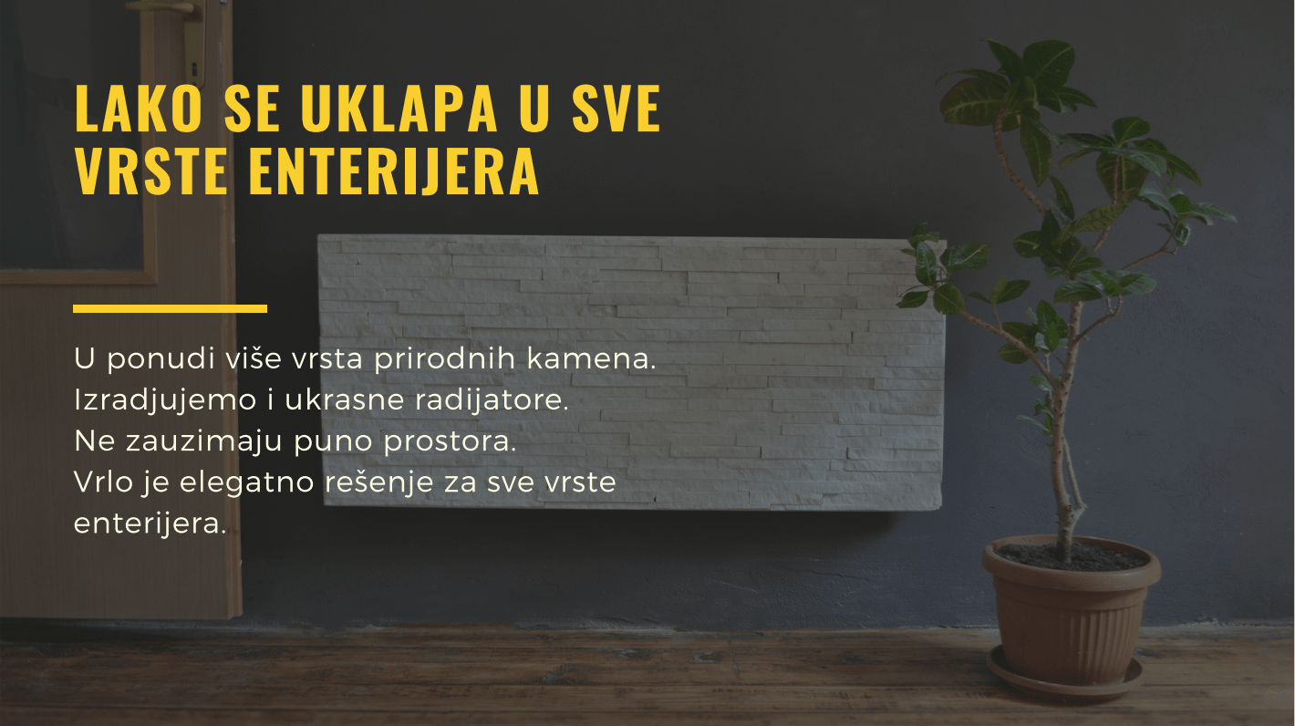 Nasi mermerni radijatori (infracrveno grejanje) zbog ravnomernog zagrevanja prostorije ne prave razliku izmedju poda i plafona, time imaju i manju potrošnju energije